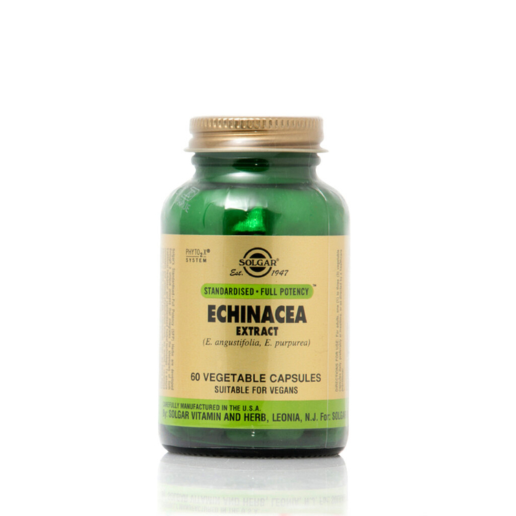 Το Echinacea Extract (E. angustifolia, E. purpurea) της Solgar παρουσιάζει αντιβακτηριακές, αντιφλεγμονώδεις και κατά των διηθητών ιών ιδιότητες.