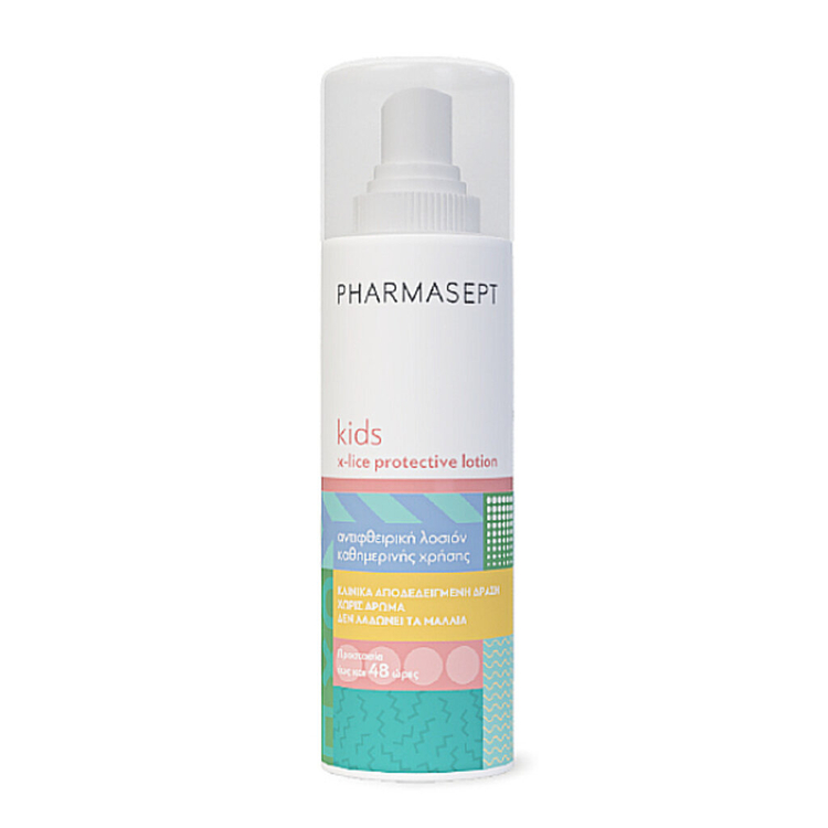 Η προληπτική αντιφθειρική λοσιόν Kid Care X-Lice Cologne της Pharmasept προσφέρει προστασία από τις ψείρες που διαρκεί έως και 48 ώρες χωρίς να λαδώνει τα μαλλιά.